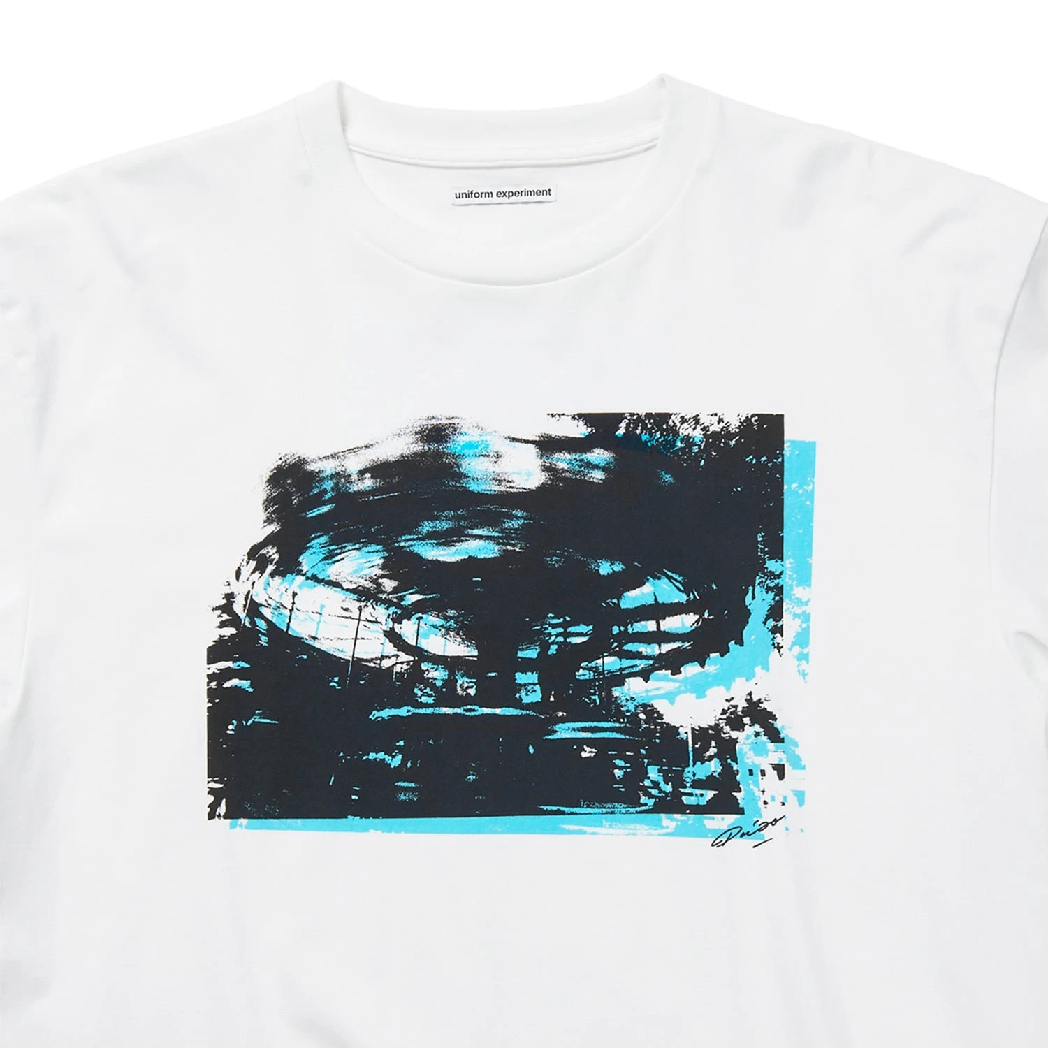 A short-sleeve T-shirt with an attractive photograph of Moriyama’s worldview on the front. The small signature enhances the piece. The back features the brand logo and his signature, creating a look unique to this collaboration. Available in white, it has an outstanding presence whether worn alone or as an inner layer.