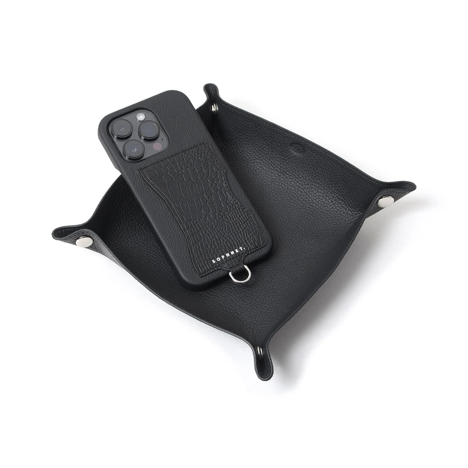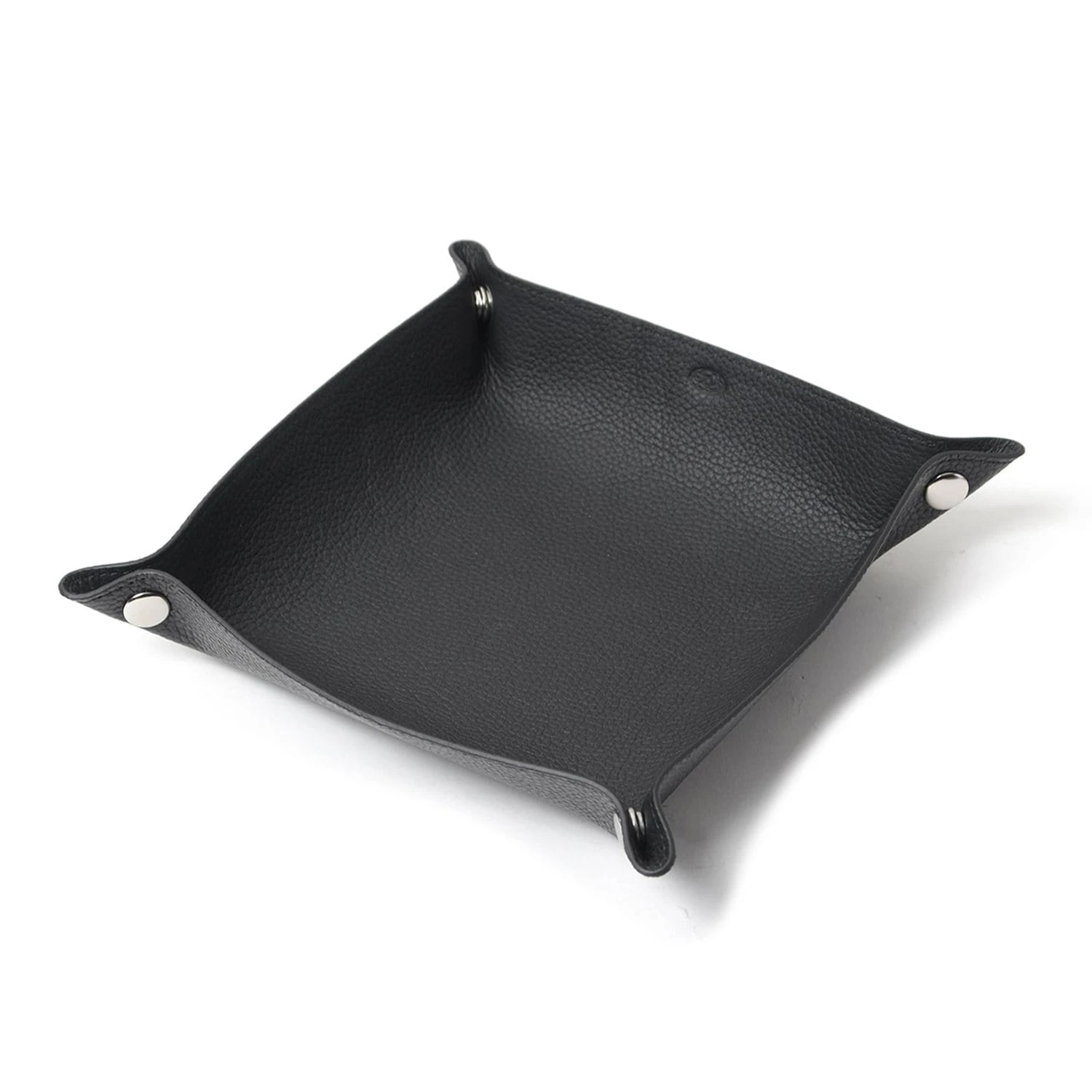 The product, which functions as a tray by securing the four corners with snap summarys, is a collaboration item with Demi Urubo, which uses high-quality cow leather made by a French tanner. When the summary is removed, it lies flat, making it convenient to carry. It will fill your home, office, or business trip with a luxurious atmosphere.