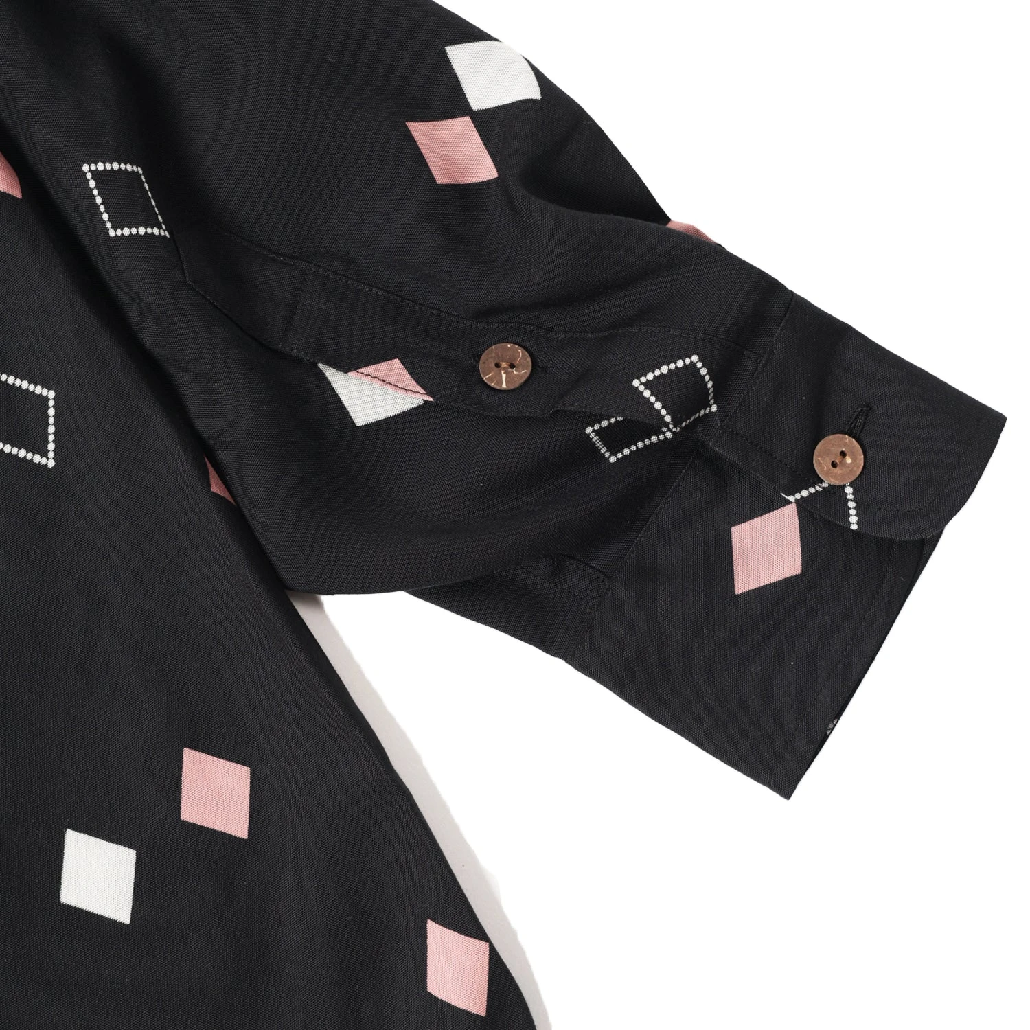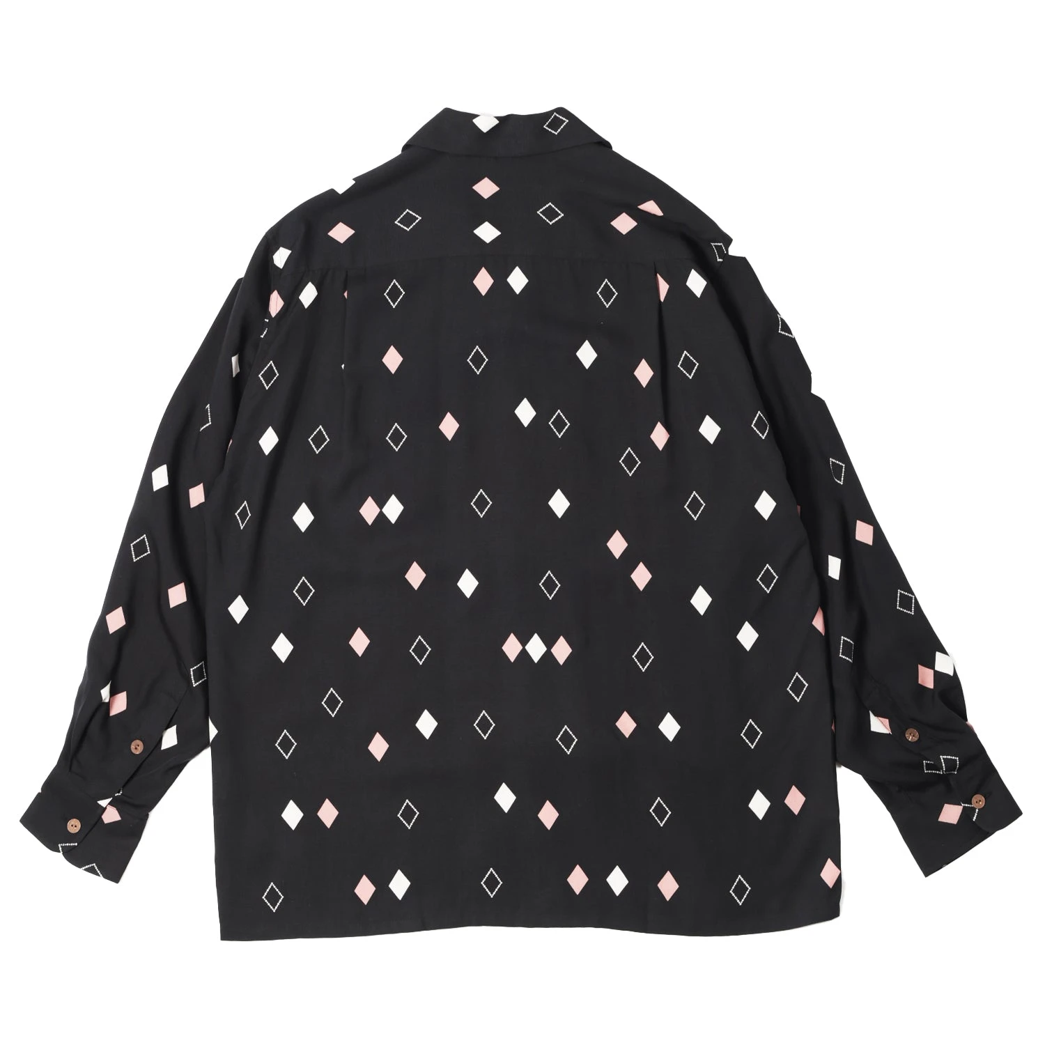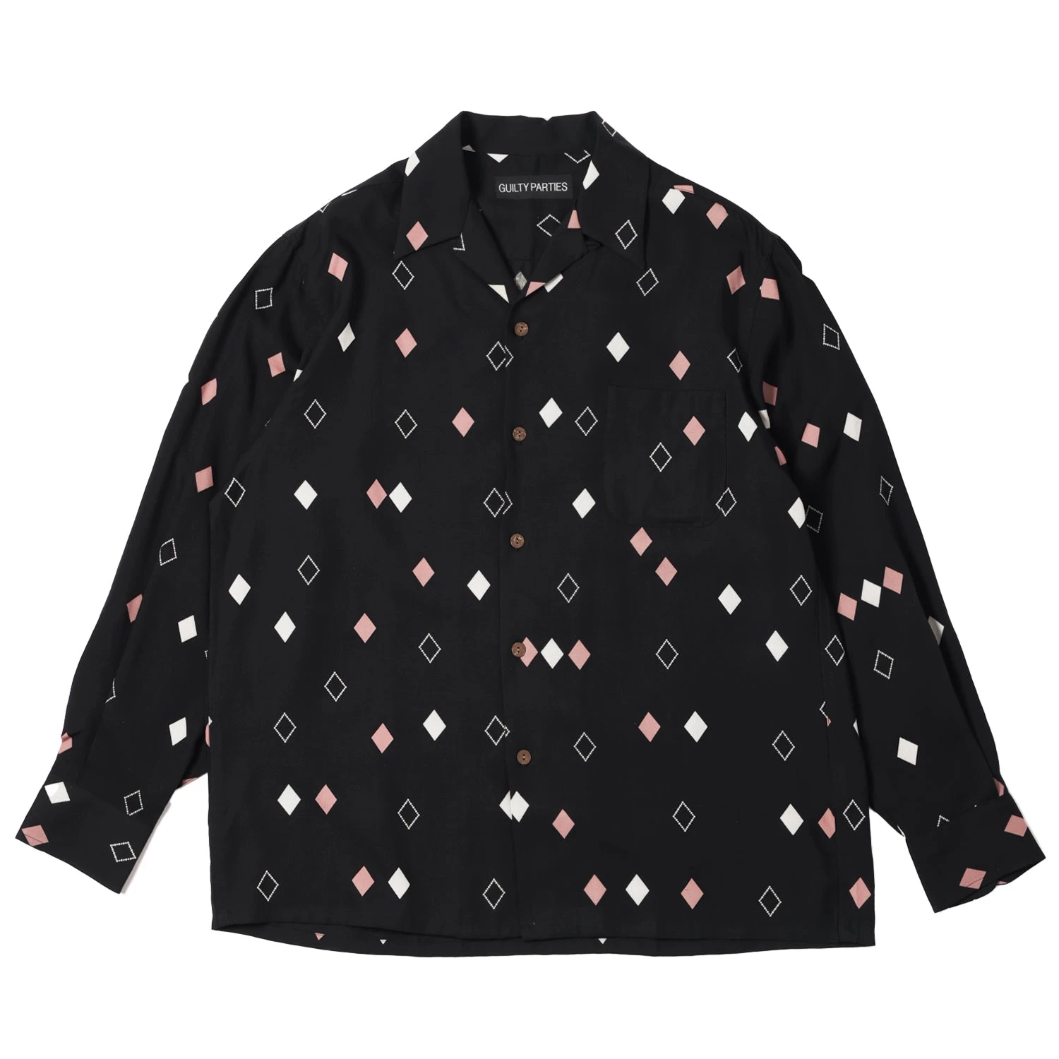 From WACKO MARIA’s 2024 Fall/Winter collection “Tengoku Tokyo”, we present the gray DIAMOND HAWAIIAN SHIRT L/S 24FW-WMS-HI04, a long-sleeved Hawaiian shirt made of 100% rayon fabric with a moderate thickness and a diamond pattern scattered all over. Available in two colors: black and white.
