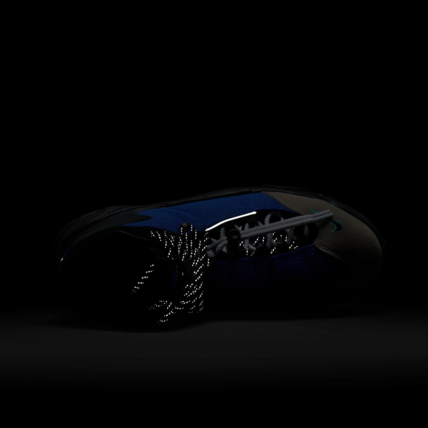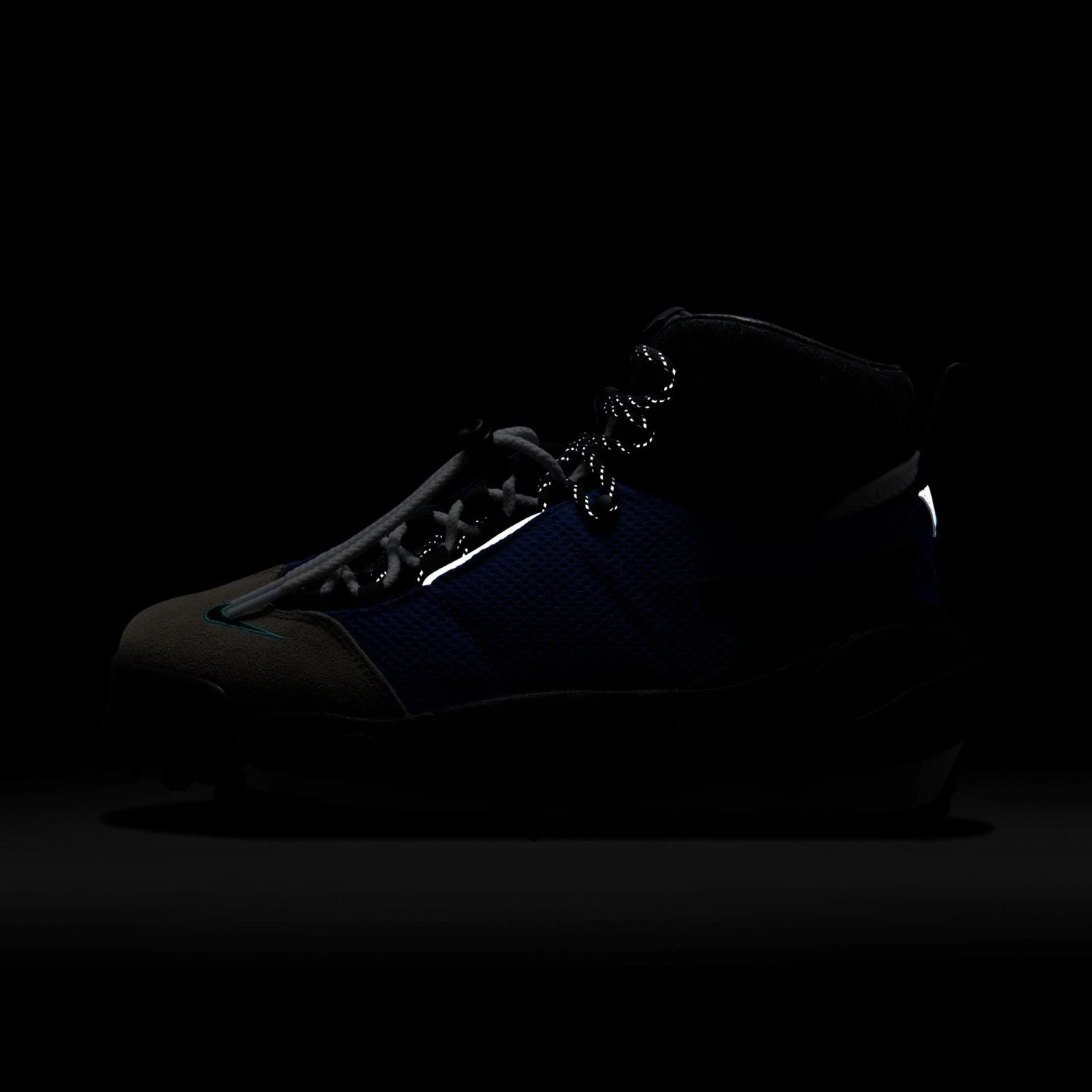 Lugged outsole, round boot laces and suede paneling draw inspiration from the Nike Air Magma.