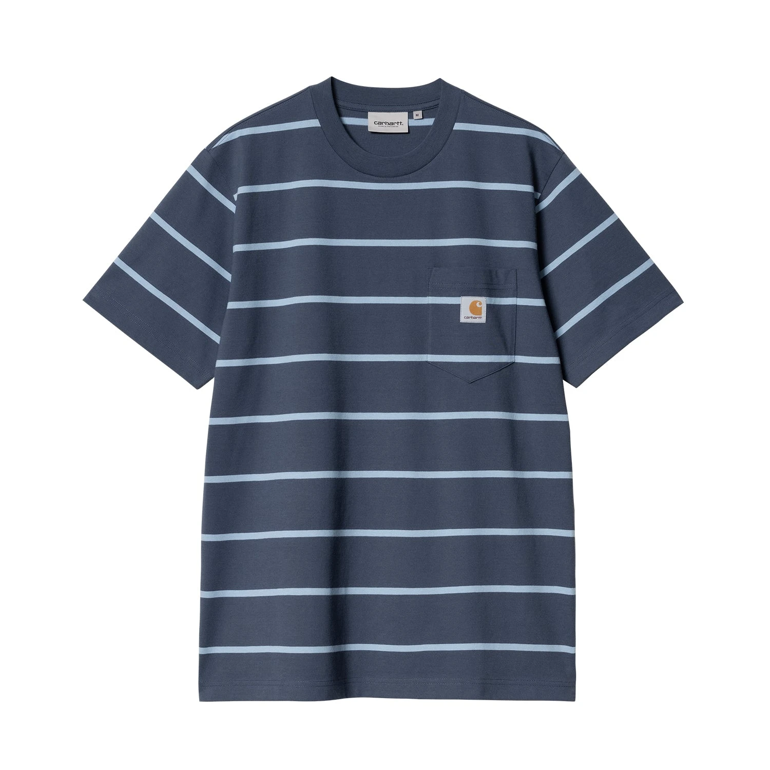 The S/S Aiken Pocket T-Shirt is made in a regular fit from midweight cotton, featuring allover stripes. A woven Square Label appears on the left chest pocket.