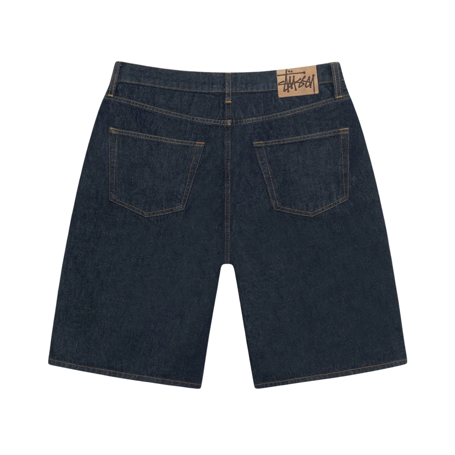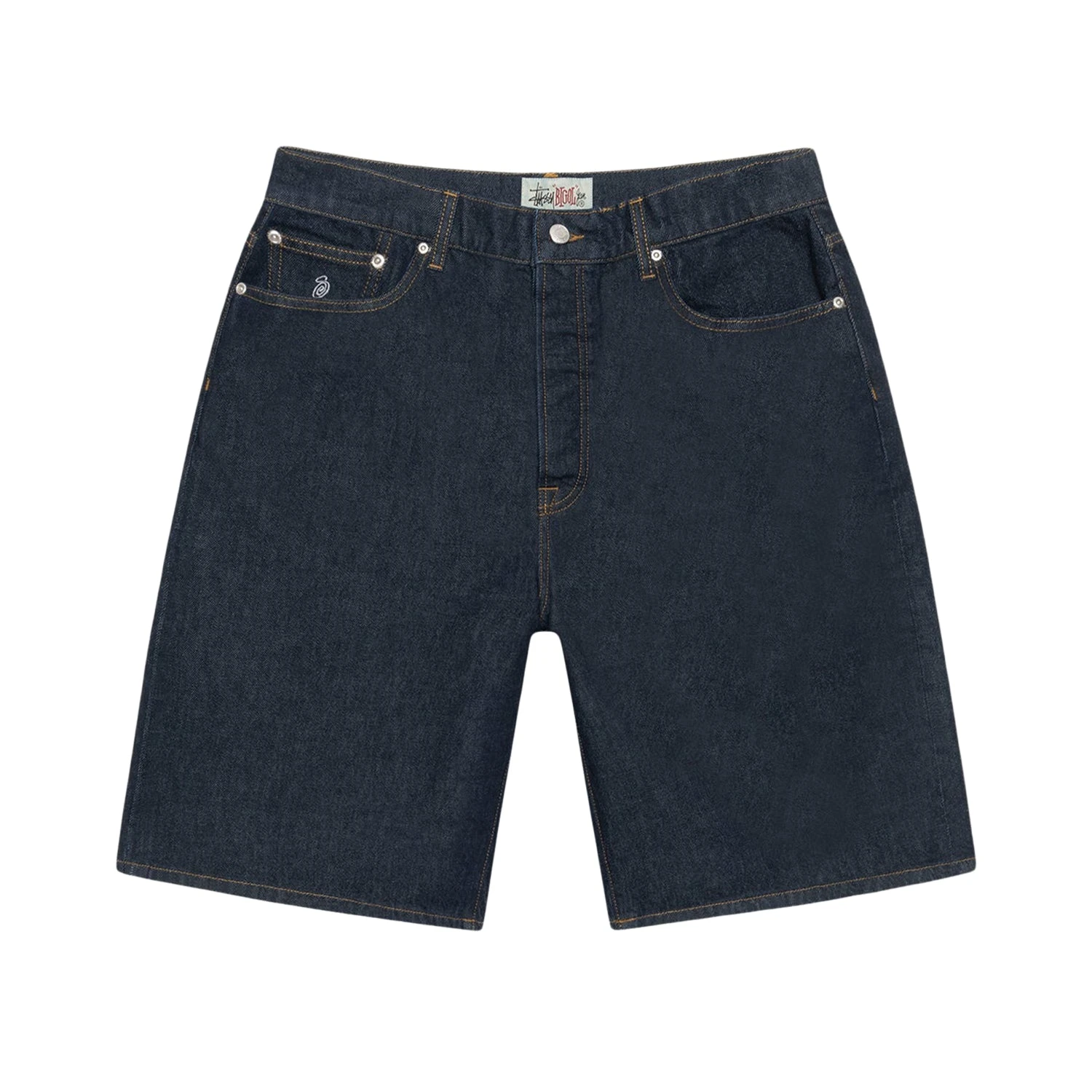 Baggy short in 14.5oz cotton denim. Oversized waist with a relaxed rise and roomy cut. Features branded nickel shank hardware and a suede Stüssy logo patch. Size down for a true-to-size fit in the waist, or order your normal size for a baggier fit.