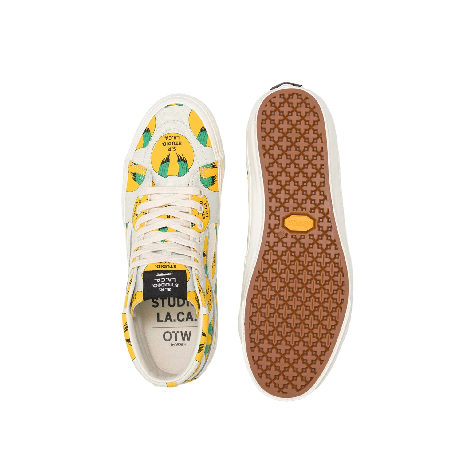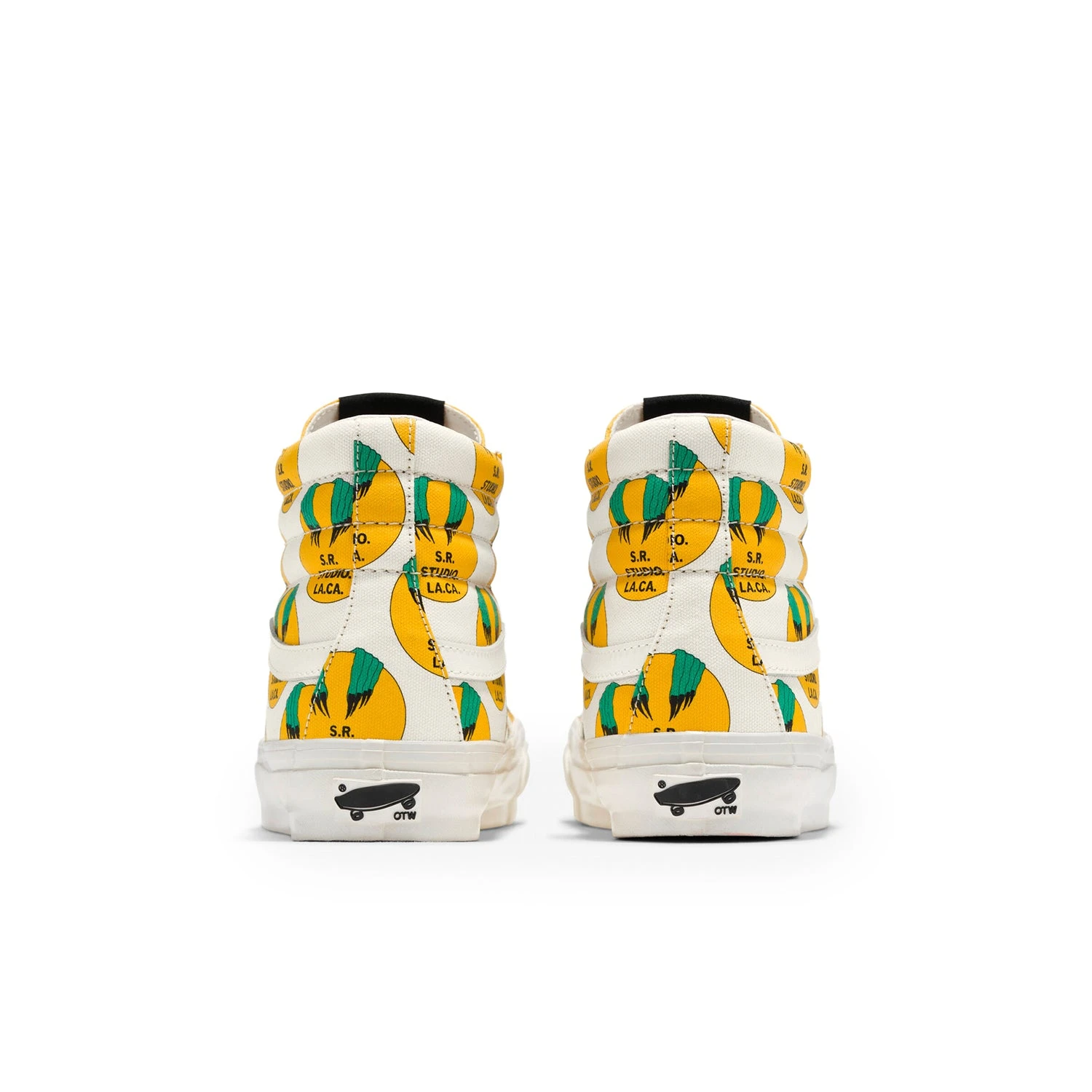 OTW by Vans comes together with Sterling Ruby’s S.R. Studio. L.A. CA once again to breathe new life into the Sk8-Hi 38 Vibram. Dressed in white with vibrant yellow tones, the OTW by Vans and Sterling Ruby Sk8-Hi 38 Vibram is crafted with durable canvas throughout the upper, complemented by the quilted padded collar and buffed leather lining for maximized comfort and cushioning, while a Vibramยฎ rubber sole offers enhanced grip whether you’re heading to the skate park or the city.